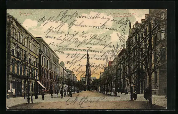 AK Stuttgart, Johannesstrasse und Johanneskirche