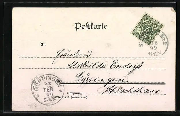 alte Ansichtskarte, gelaufen 1899, kleiner Eckschaden links oben, guter Zustand