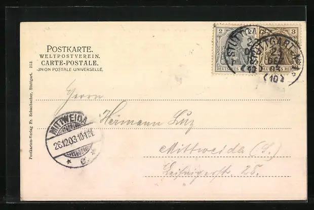 alte Ansichtskarte, gelaufen 1903, guter Zustand