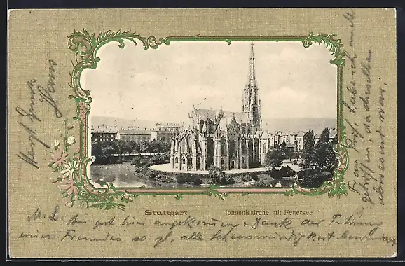 AK Stuttgart, Johanniskirche mit Feuersee