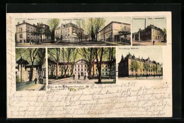AK Stuttgart, Katharinenhospital, Verwaltungsgebäude, Eingang und Operationsgebäude