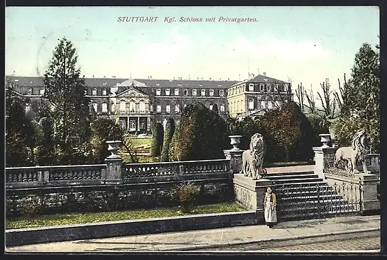 AK Stuttgart, Königliches Schloss mit Privatgarten