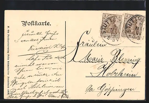 alte Ansichtskarte, gelaufen 1908, guter Zustand