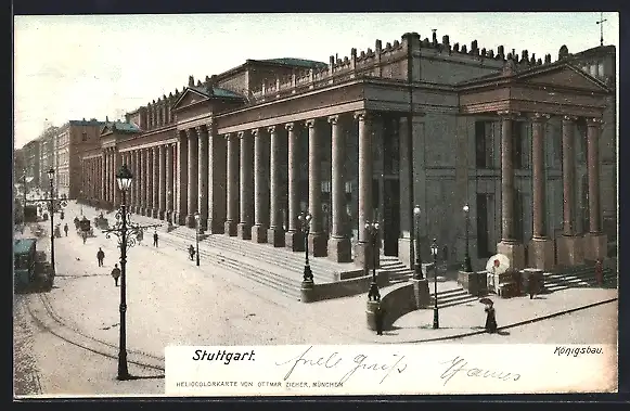 AK Stuttgart, Königsbau mit Strassenbahn