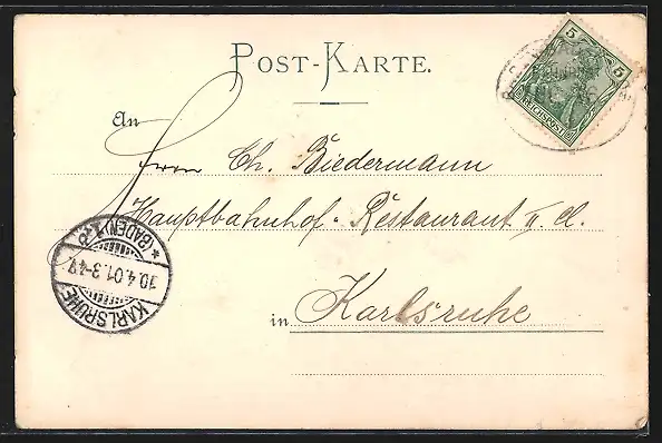 alte Ansichtskarte, gelaufen 1901, Eckknick li. unten, minimaler Einriss li. unten, guter Zustand