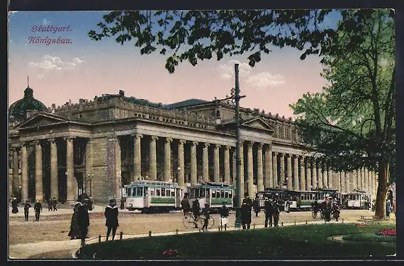 AK Stuttgart, Königsbau und Strassenbahnen