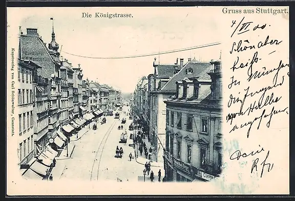 AK Stuttgart, Königstrasse aus der Vogelschau