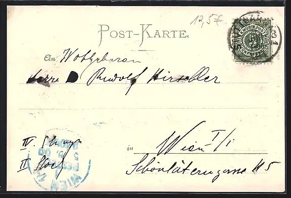 alte Ansichtskarte, gelaufen 1900, Stempelspur, Eckknick li. oben, guter Zustand