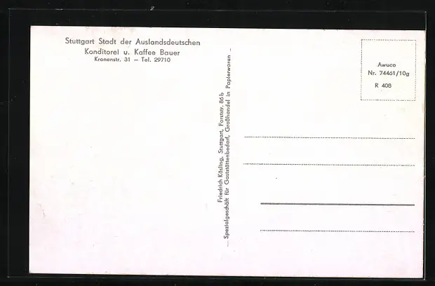 AK Stuttgart, Konditorei und Kaffee Bauer