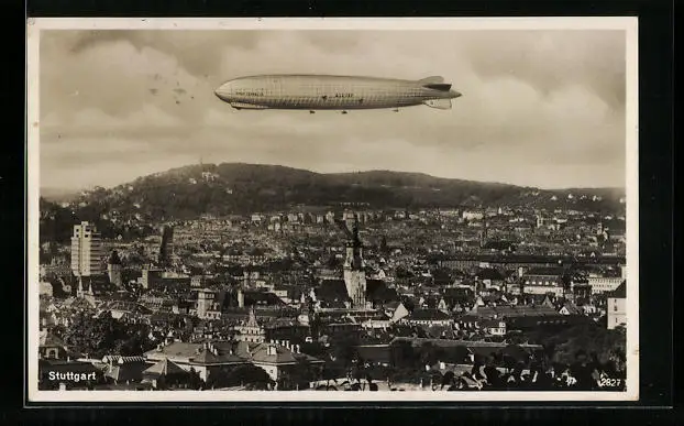 AK Stuttgart, LZ 127 Graf Zeppelin über der Stadt