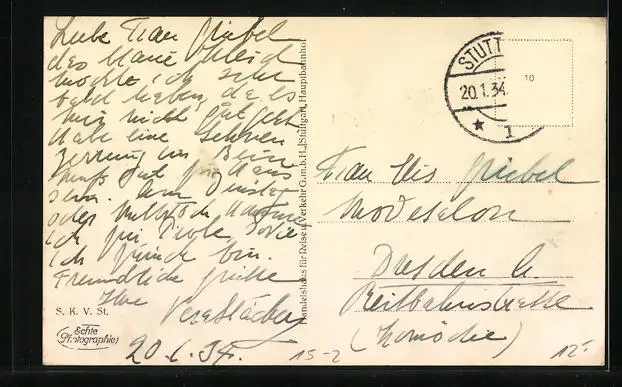 alte Ansichtskarte, gelaufen 1934, Briefmarke entfernt, guter Zustand