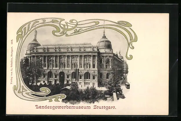AK Stuttgart, Landesgewerbemuseum mit Strassenbahn