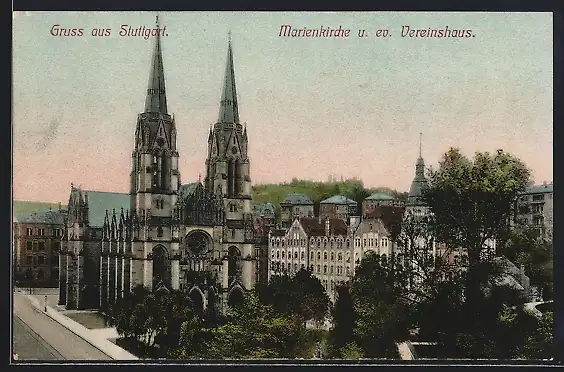 AK Stuttgart, Marienkirche und ev. Vereinshaus
