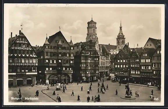 AK Stuttgart, Marktplatz, Modehaus am Markt, Passanten