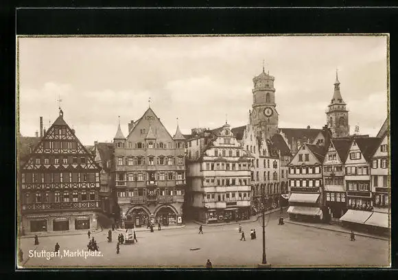 AK Stuttgart, Marktplatz aus der Vogelschau