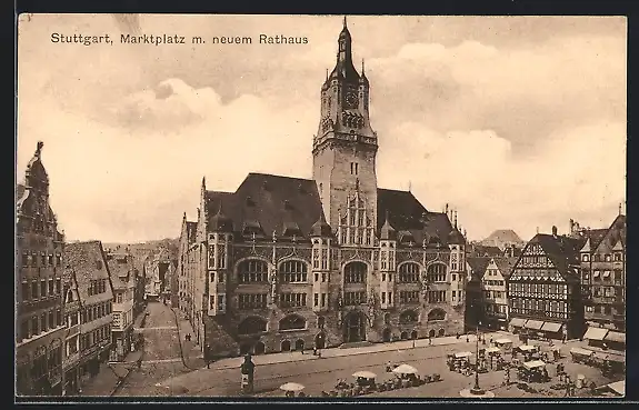 AK Stuttgart, Marktplatz m. neuem Rathaus