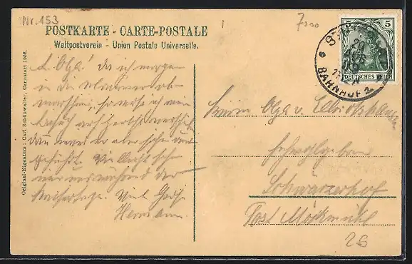alte Ansichtskarte, gelaufen 1909, Stempelspur, guter Zustand