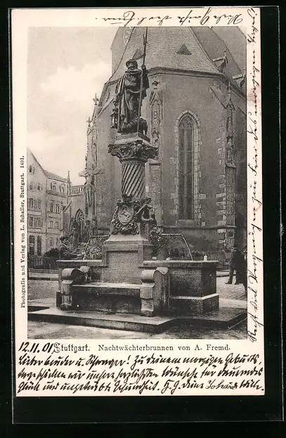 AK Stuttgart, Nachtwächterbrunnen von A. Fremd
