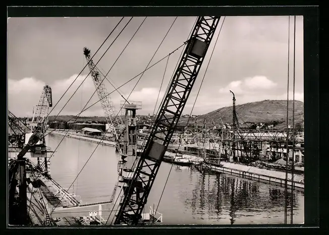 AK Stuttgart, Neckarhafen mit Kränen