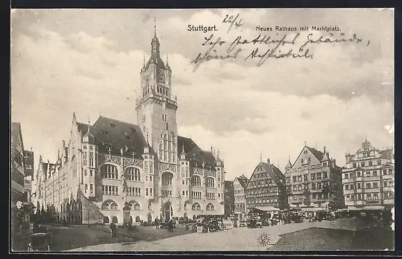 AK Stuttgart, Neues Rathaus mit Marktplatz