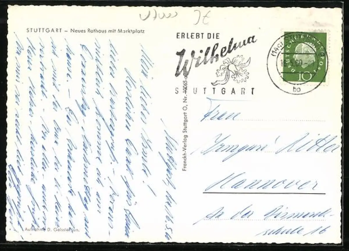 AK Stuttgart, Neues Rathaus mit Marktplatz