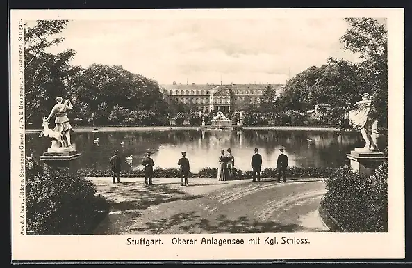 AK Stuttgart, Oberer Anlagensee mit Kgl. Schloss