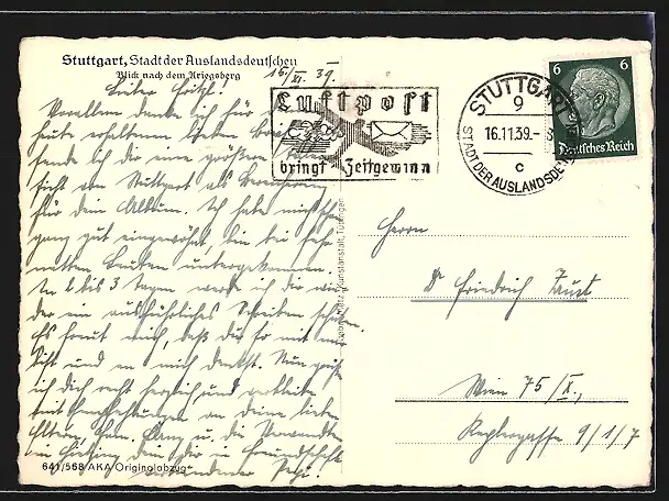 gelaufen 1939, Eckknick oben li., guter Zustand