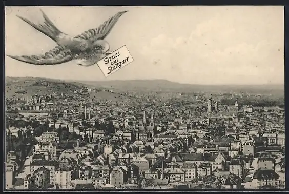AK Stuttgart, Panoramablick über die Stadt, Schwalbe