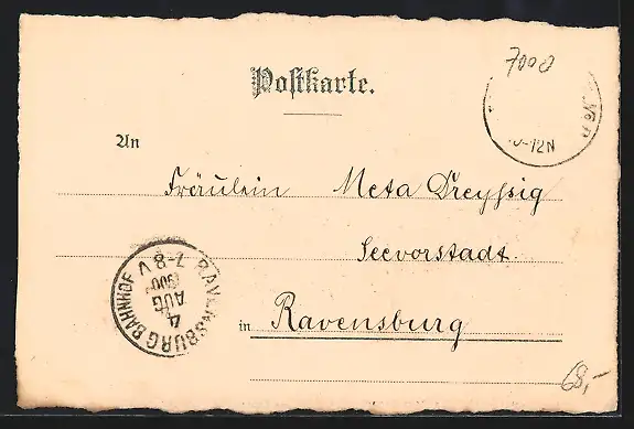 gelaufen 1900, Briefmarke entfernt, guter Zustand