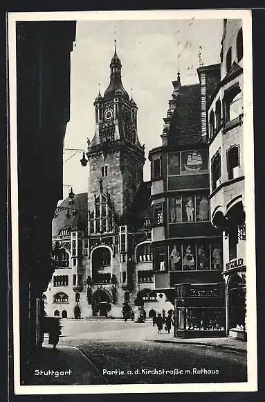 AK Stuttgart, Partie a. d. Kirchstrasse m. Rathaus