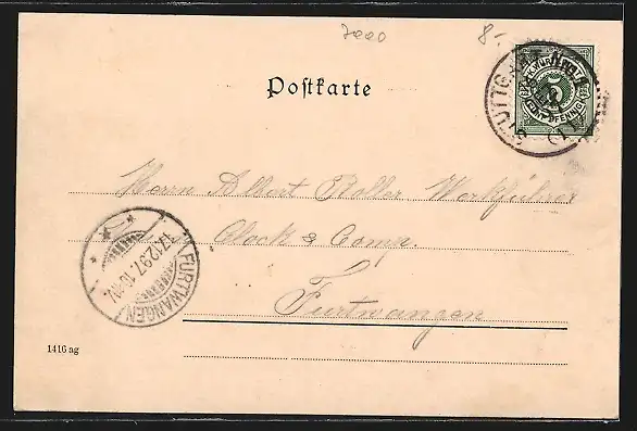 alte Ansichtskarte, gelaufen 1897, guter Zustand
