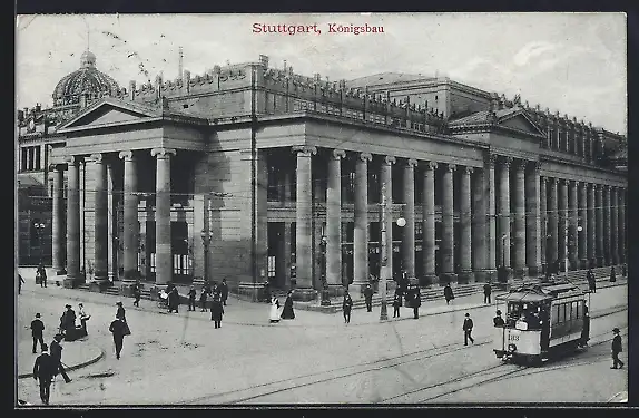 AK Stuttgart, Partie am Königsbau mit Strassenbahn