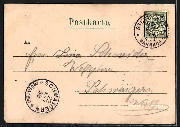 alte Ansichtskarte, gelaufen 1898, guter Zustand