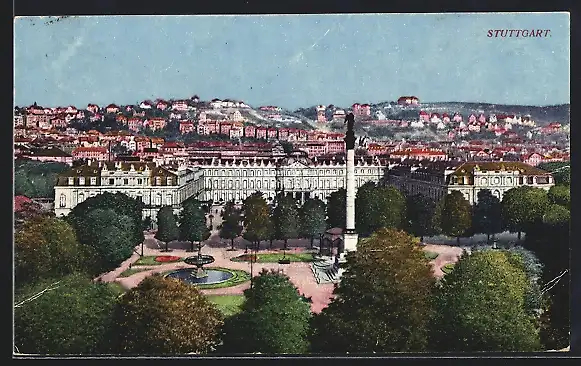 AK Stuttgart, Platz mit Springbrunnen