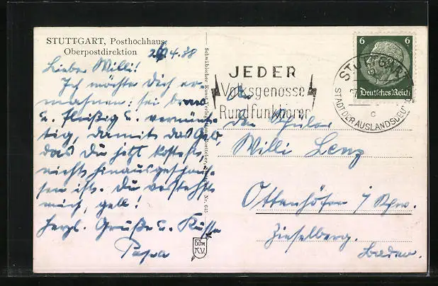 AK Stuttgart, Posthochhaus, Oberpostdirektion
