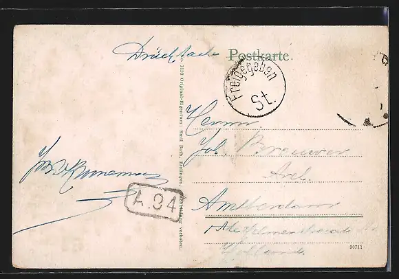 alte Ansichtskarte, gelaufen, Briefmarke entfernt, guter Zustand