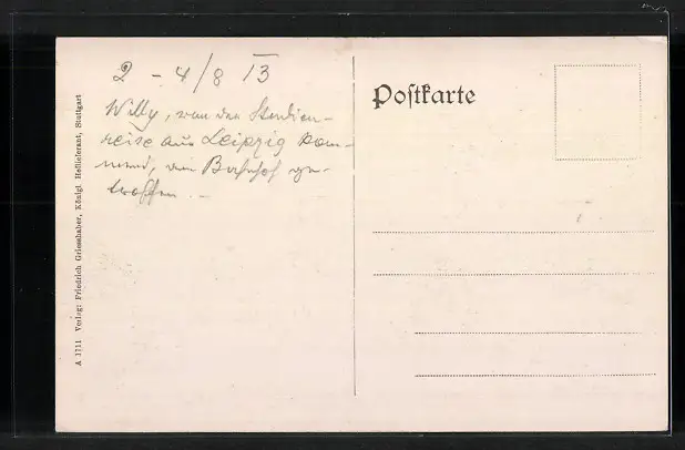 ungelaufen, Rückseite beschrieben 1913, guter Zustand