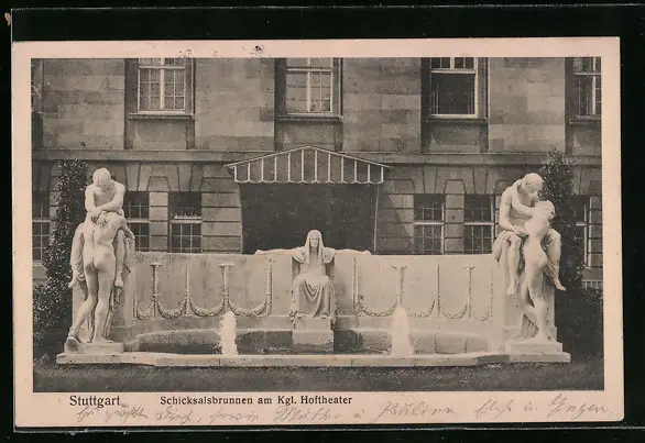 AK Stuttgart, Schicksalsbrunnen am Kgl. Hoftheater