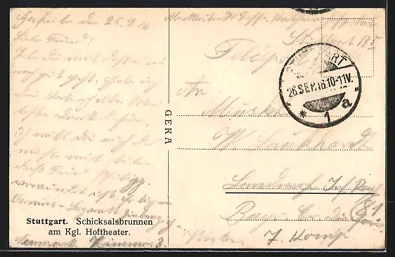 AK Stuttgart, Schicksalsbrunnen am Kgl. Hoftheater