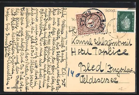 alte Ansichtskarte, gelaufen 1930, Stempelspur, guter Zustand