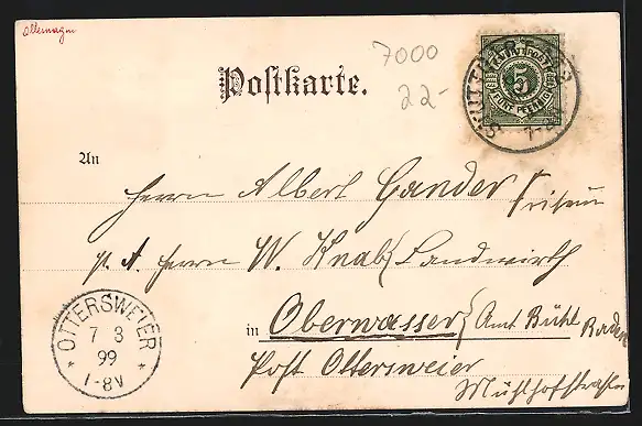 alte Ansichtskarte, gelaufen 1899, guter Zustand