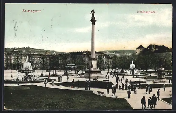 AK Stuttgart, Schlossplatz mit Denkmal