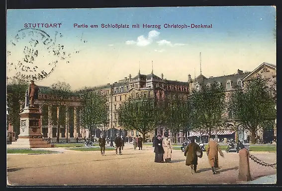 AK Stuttgart, Schlossplatz mit Herzog-Christoph-Denkmal