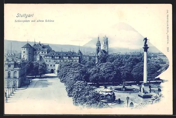 AK Stuttgart, Schlossplatz mit altem Schloss