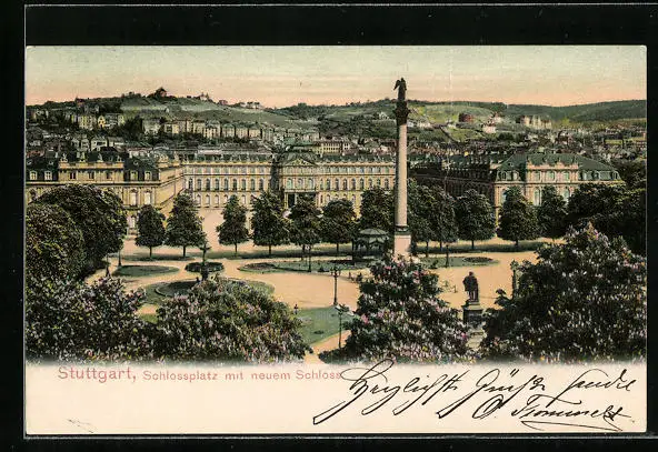 AK Stuttgart, Schlossplatz mit neuem Schloss