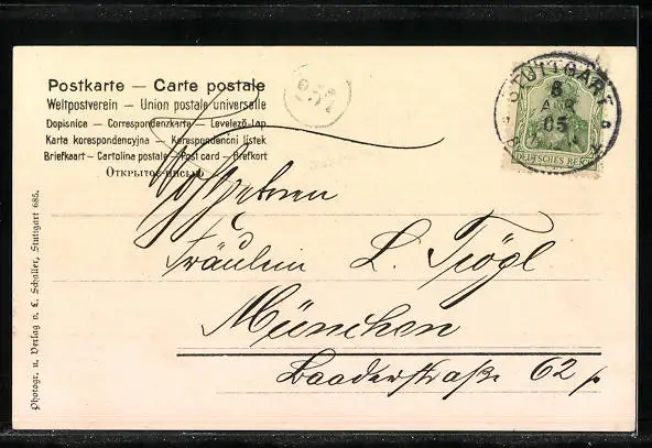 alte Ansichtskarte, gelaufen 1905, Bugspur rechts, guter Zustand