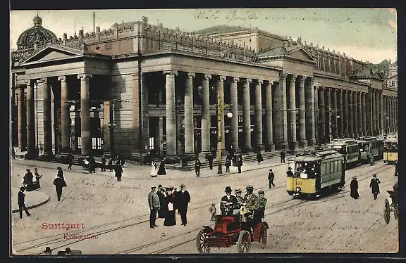 AK Stuttgart, Strassenbahn vor dem Königsbau
