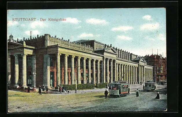 AK Stuttgart, Strassenbahnen vor dem Königsbau