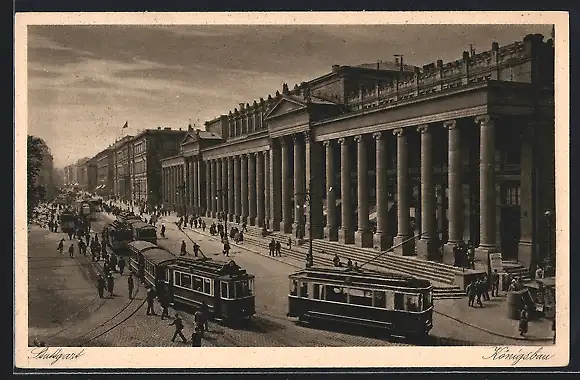 AK Stuttgart, Strassenbahnen vor dem Königsbau