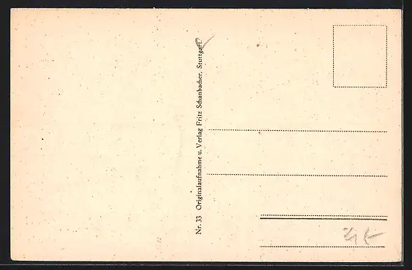 Personenbezogene Daten auf der Rückseite der Karte wurden durch blauen Textmarker unkenntlich gemacht. Die blauen Stellen sind auf die Vorderseite durchgeweicht und wirken sich negativ auf das Postkartenfoto aus